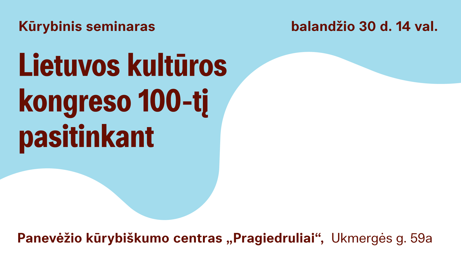 Panevėžyje kūrybinis seminaras-diskusija vyks balandžio 30 d. 14–16 val. Kūrybiškumo centre „Pragiedruliai“, Ukmergės g. 59A. Kūrybiniame seminare, kuris prasidės 14 val., diskusinius pranešimus pristatys LKK direktorius Virginijus Šmigelskas – „Lietuvos kultūros kongreso 100-metis“; prof. habil. dr. Rita Aleknaitė-Bieliauskienė – „Lietuvos kultūros politika: retrospektyvinis žvilgsnis į Panevėžio kraštą“; prof. habil. dr. Vilija Targamadzė – „Regionų kultūros ir švietimo laukas“; filosofas, rašytojas, publicistas, dr. Arvydas Juozaitis – „Kultūros kanonas – būtinybė“.
