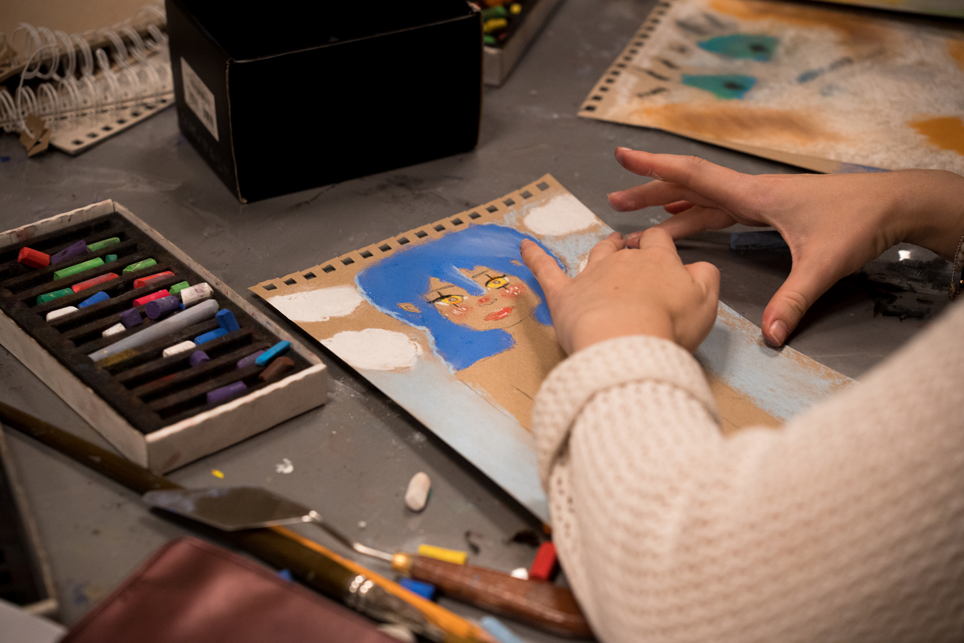 Kūrybinėse dirbtuvėse mokiniai susipažins su portreto žanru per skirtingus meno žanrus, skirtingas laiko sanklodas. Portretuose mokysis atpažinti emocijas. Pagal vizualaus mąstymo strategiją mokysis argumentuoti pagal kokią detalę portrete sprendžia, jog tai viena ar kita emocija vaizduojama. Kita praktinė dalis- patiems mokiniams atlikti portretą grafine arba tapybine prienone. Portrete pavaizduoti, perteikti emociją.